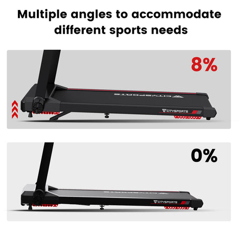 Le CITYSPORTS PRO vous permet d’adapter facilement l’intensité de vos séances grâce à sa pente réglable et à une vitesse maximale de 12 km/h. Que vous souhaitiez marcher, courir légèrement ou effectuer un entraînement plus soutenu, vous profitez d’une large plage de réglages pour progresser à votre rythme.